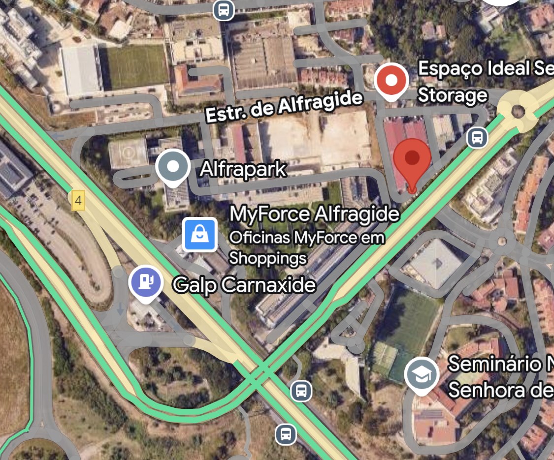 Por favor, note que não há lugares de estacionamento disponÃveis em frente ao armazém, pelo que recomendamos que estacione na escola e vá a pé até ao armazém, ou que utilize o parque público do Alfrapark que fica próximo.
