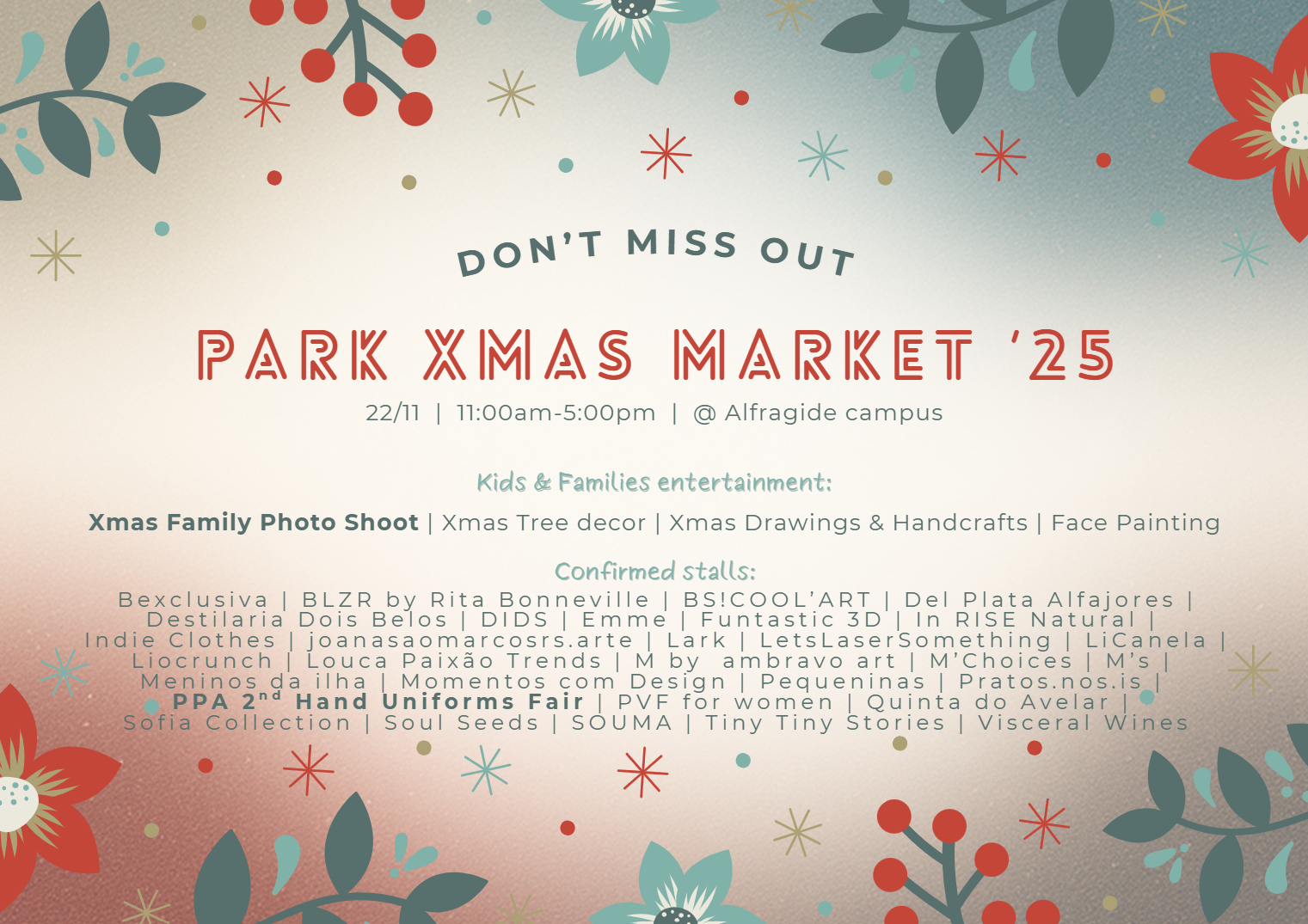 Marque na agenda, convide os seus amigos e traga o seu espÃrito natalÃcio! Estamos ansiosos por vos receber para desfrutarem de um dia de compras, comida e muita alegria no PaRK Xmas Market '25!